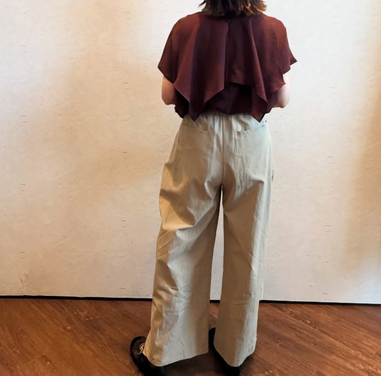 ケープのようなデザインで動く度に揺れるレディなブラウスです。