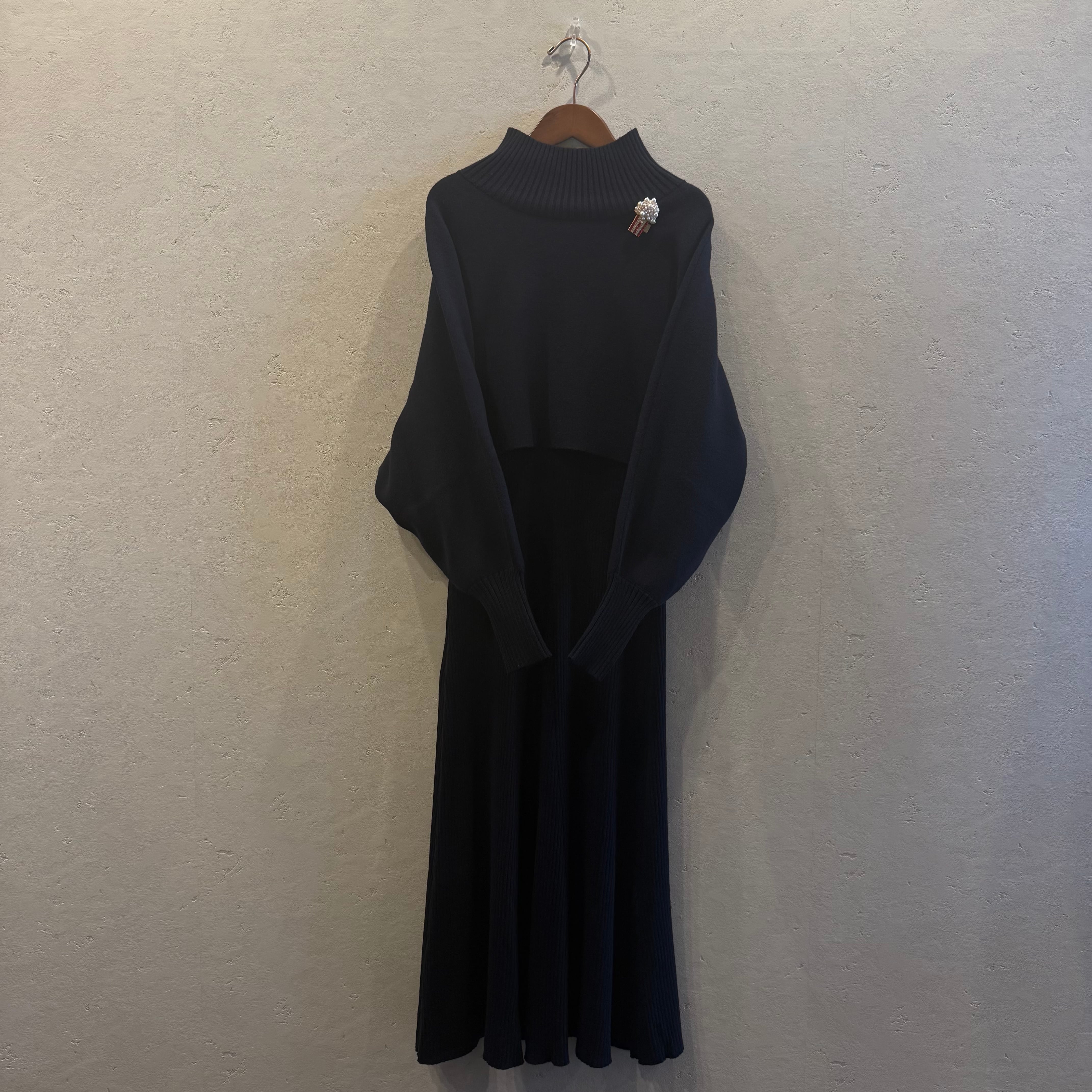 ボレロ風のニットとリブニットワンピースのセットアップ。