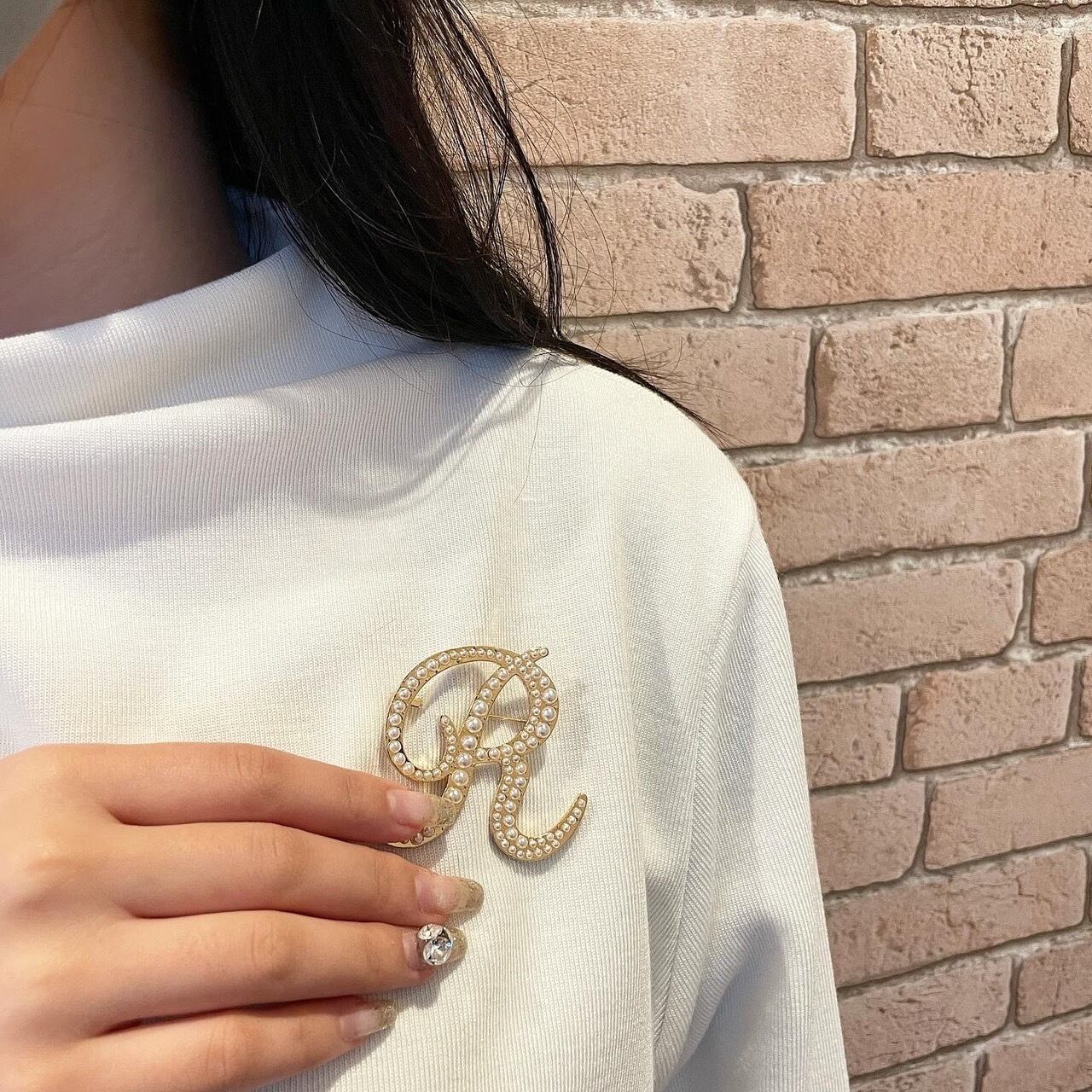 イニシャルブローチ H R