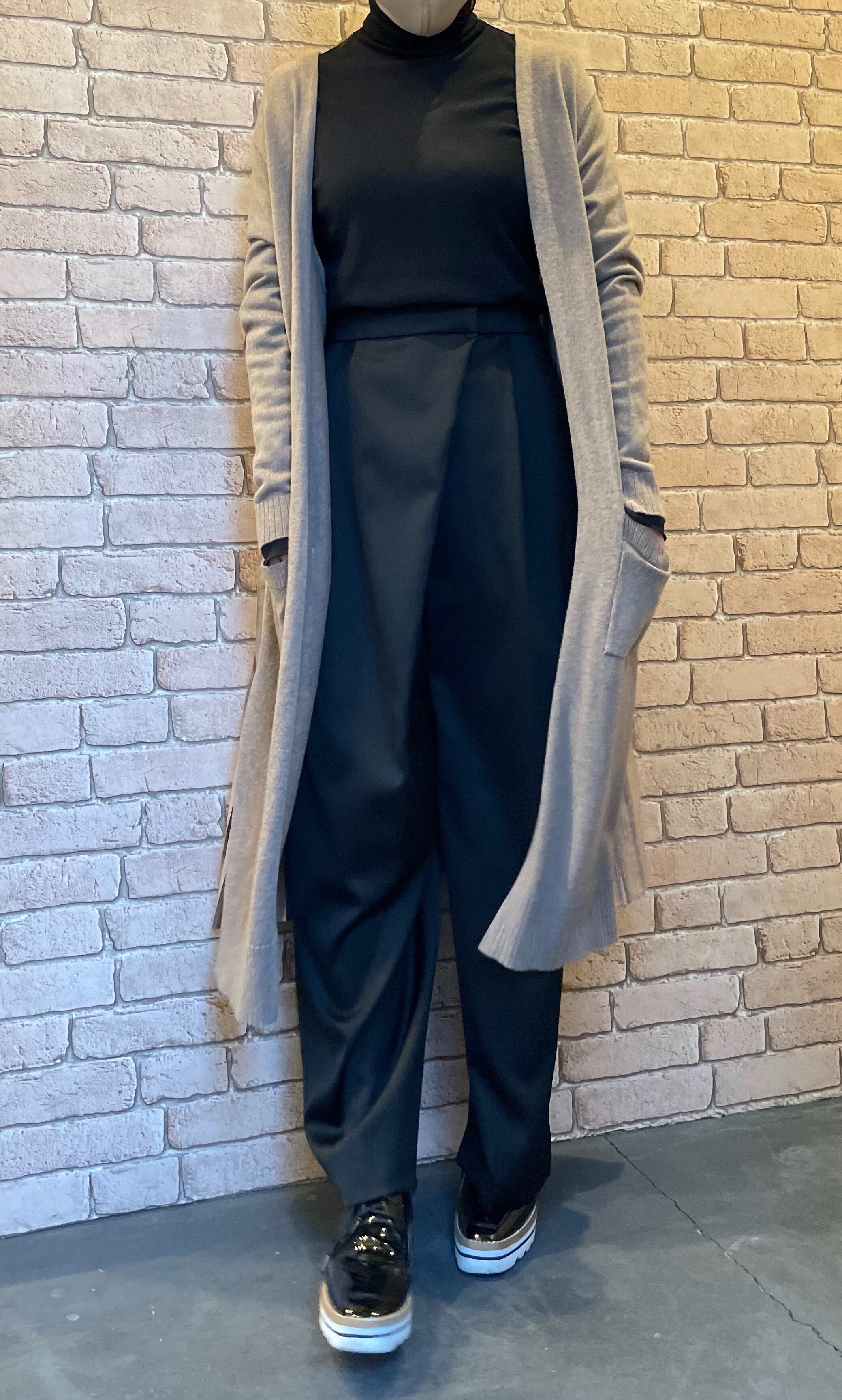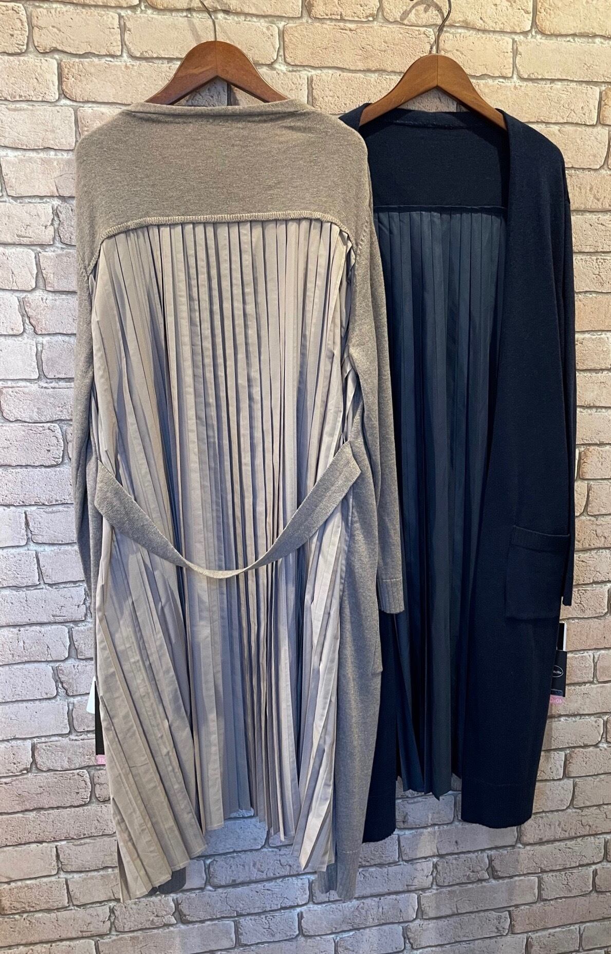 柔らかいカーディガンにプリーツデザインが動きを出してくれます。